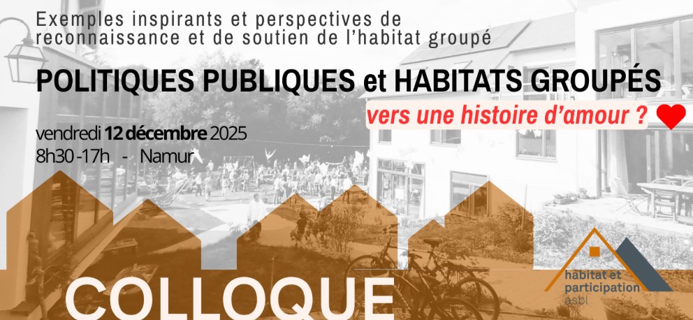 Habitat et Participation vous propose chaque mois, en alternance, une activité spécifiquement dédiée à l’habitat groupé, pour vous aider à faire avancer votre projet – en alternance également, un mois à Bruxelles, le mois suivant en Région wallonne. Nous vous conseillons pour cela de suivre notre page AGENDA afin de vous tenir au courant et/ou de vous inscrire à notre Newsletter.