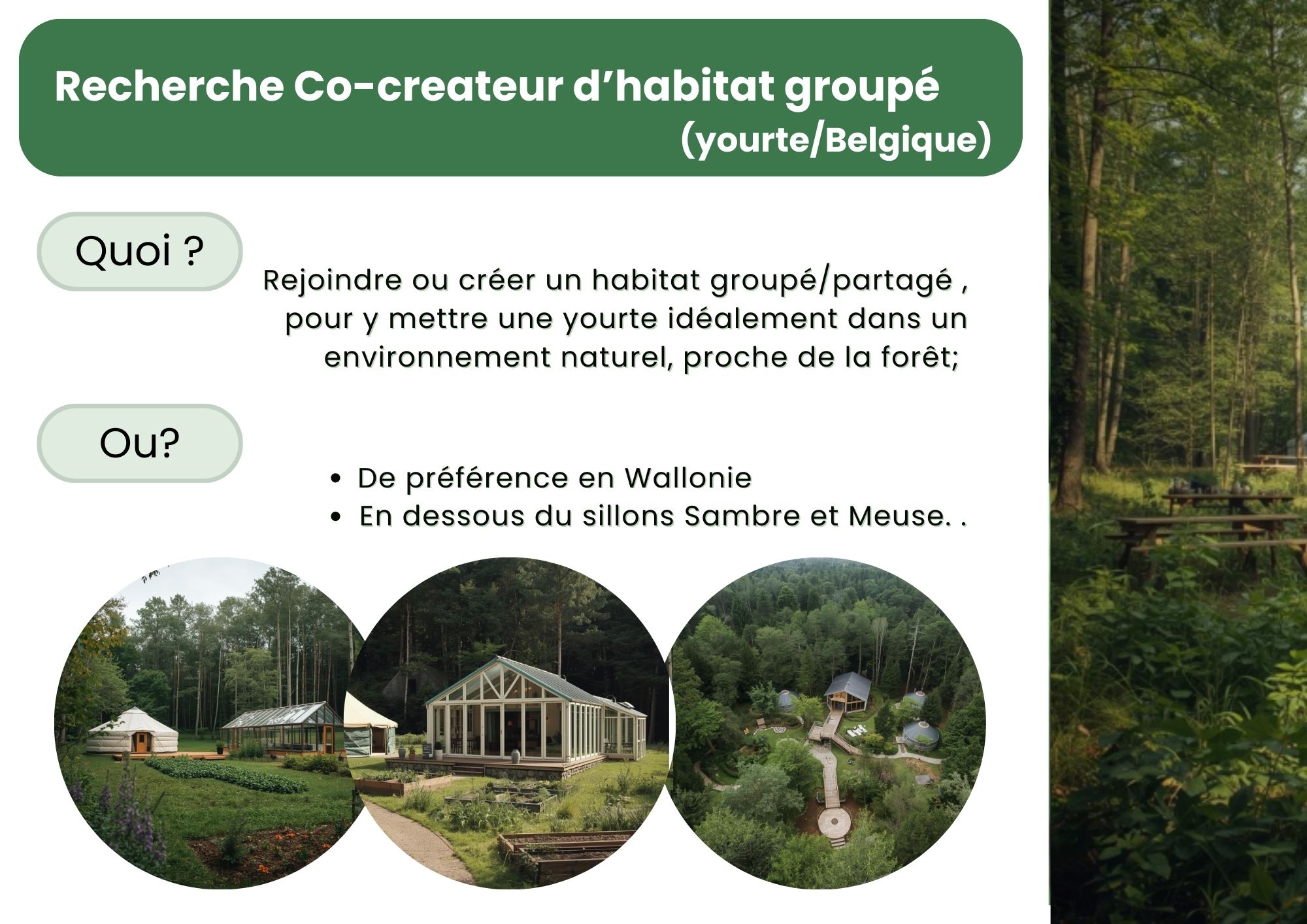 Recherche co-créateur habitat groupé (yourte-Belgique)