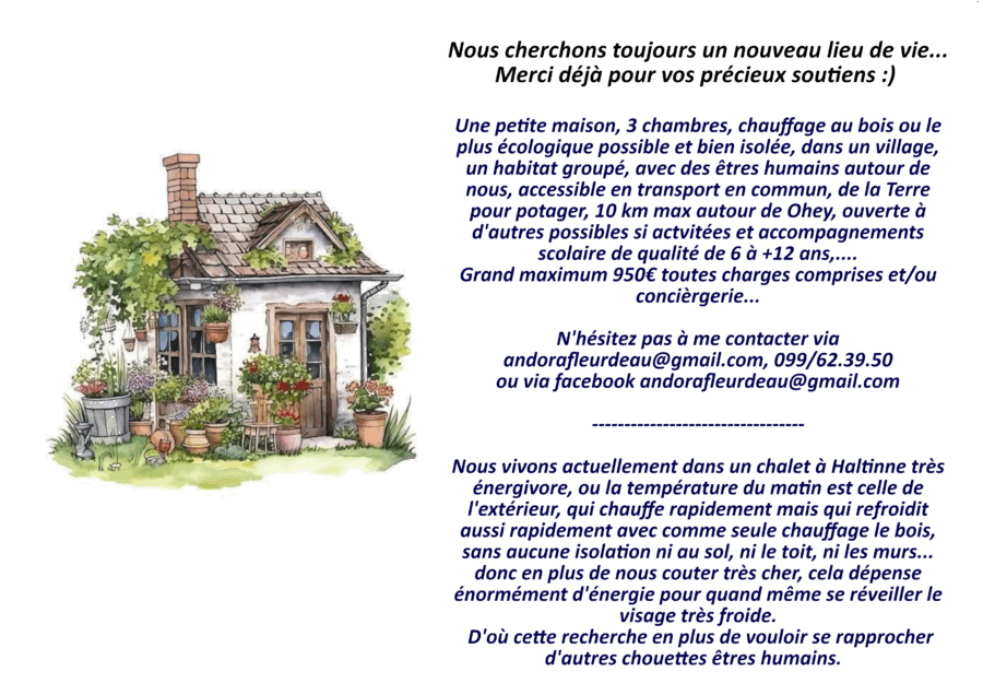 – Je clôture un gros chapitre de ma vie et notre lieu de vie ne réponds pas à nos besoins essentiels pour poursuivre mon chemin de Vie avec mes 2 enfants