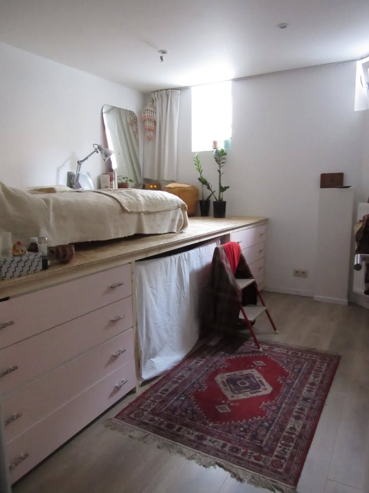 English version below[Coloc à Bruxelles 1030 – 538 € à partir du 15 Avril ou début Mai]( > écrivez nous sur notre mail commun: avenue.ernestrenan@gmail.com ) Coloc de 3 humaines (dont toi) et un adorable loulou Au rdc d’une maison de maître, avec vue sur jardin ensoleillé toute la journée. (En bonus: ton deuxième jardin, le parc Josaphat qui est à même pas 5min à pied)L’appart est sur deux étages: premier étage avec les communs, cuisine et la chambre d’Auranne. Au sous-sol: sdb + WC (que tu partages avec Auranne) + ta chambre et celle de Charles. Ta chambre se situe au sous sol avec deux petites fenêtres, cela veut dire qu’elle n’est pas très lumineuse en journée. Elle est par contre très cozy en soirée. Elle est équipée d’un meuble en mezzanine fait sur mesure, avec beaucoup de stockage. 538 € toutes charges incl. Les ambiances de la maison: douceur, calme et cozy . On y prend soin du lieu et des autres. Charles est très pris par ses études d’archi, mais quand il est là, tu l’entendras chanter dans la maison ou le verra sourire avec enthousiasme. Auranne aime aussi bien être dans son cocon que les moments de papote et de partage, les soirées film et les petits déjeuners au soleil sur la terrasse.La coloc recherche quelqu’un.e dans la trentaine/ quarantaine – avec qui créer un espace calme et chaleureux, où chacun.e se sent libre d’avoir sa propre indépendance tout en partageant des petits moments de la vie quotidienne (repas, regarder un film, jeux de société, …)Si ça te dit de rejoindre cet petit nid douillet, envoi une petite description de toi à l’adresse avenue.ernestrenan@gmail.com (important car nous ne lisons pas les MP sur facebook) [Rent – Bruxelles 1030 – 538 € – from the 15th of April or begining of May]( > send us an email : avenue.ernestrenan@gmail.com ) Roommate of 3 humans (including you) and an adorable dog On the ground floor of a mansion, with a view of a garden that gets sun all day long. (Bonus: your second garden, Josaphat Park, is less than a 5-minute walk away)The apartment is on two floors: first floor with shared areas, kitchen, and Auranne’s room. In the basement: bathroom + toilet (which you share with Auranne) + your bedroom and Charles’s bedroom. Your bedroom is in the basement with 2 small windows, which means it doesn’t get much light during the day. However, it is very cozy in the evening. It is equipped with a custom-made mezzanine cabinet with plenty of storage space. €538 all charges included. The atmosphere in the house: gentle, calm, and cozy. We take care of the place and each other. Charles is very busy with his architecture studies, but when he’s there, you’ll hear him singing in the house or see him smiling enthusiastically. Auranne enjoys being in her cocoon as much as she enjoys chatting and sharing, movie nights, and breakfasts in the sun on the terrace.We are looking for someone in their thirties/forties to create a calm and warm space, where everyone feels free to have their own independence while sharing little moments of everyday life (meals, watching a movie, board games, etc.).If you’d like to join this cozy little nest, send a short description of yourself to avenue.ernestrenan@gmail.com (important because we don’t read private messages on Facebook).