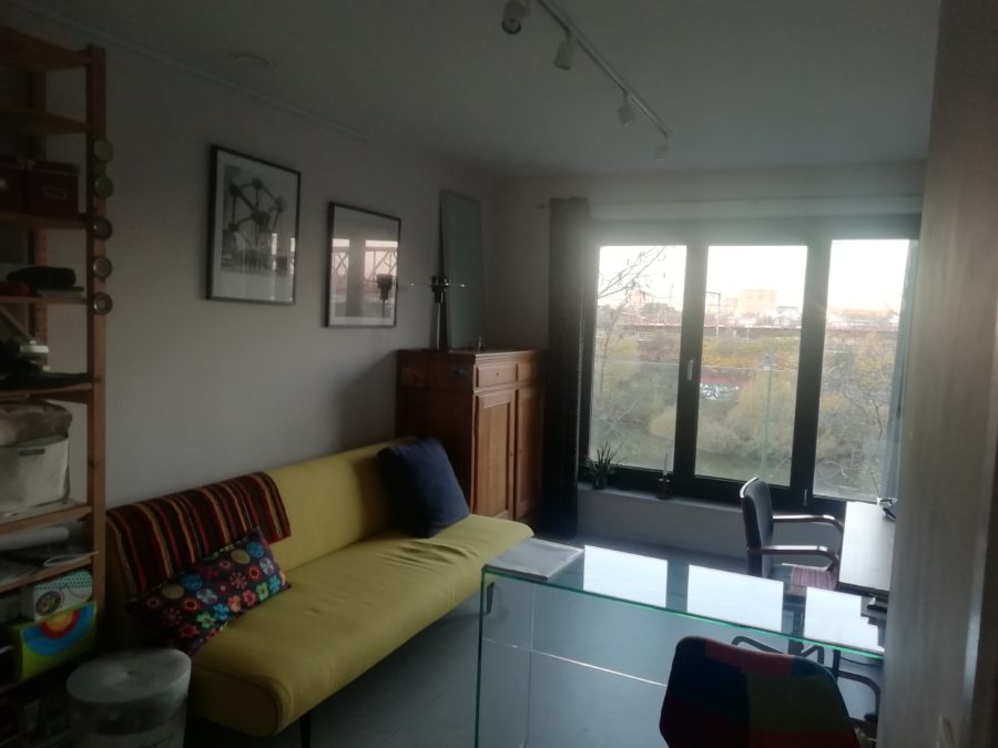 L’appartement est en fait un duplex sis au 4ème étage (avec ascenseur) de l’immeuble situé 385 avenue Van Volxem à Forest.