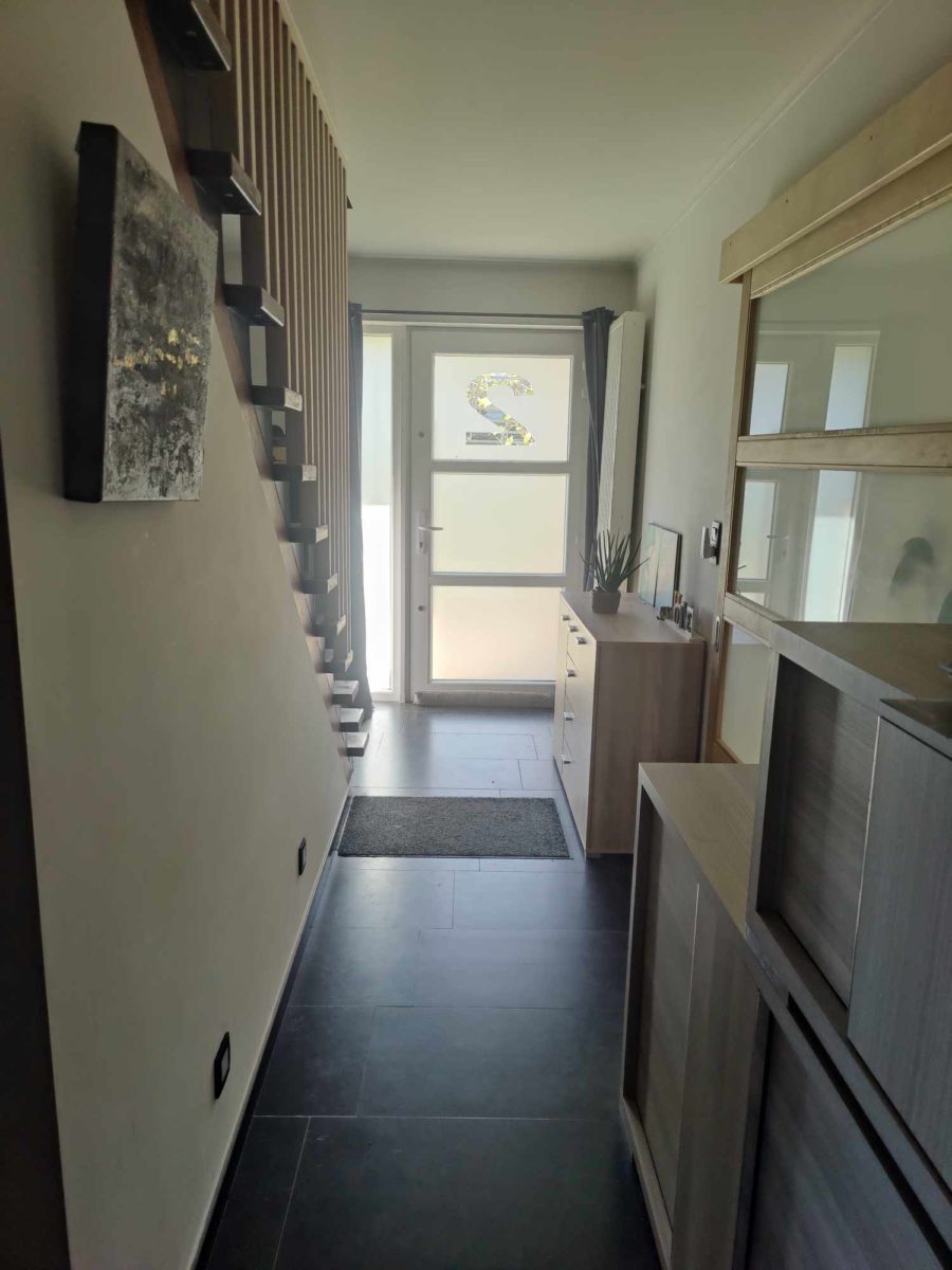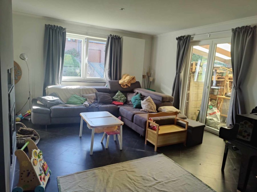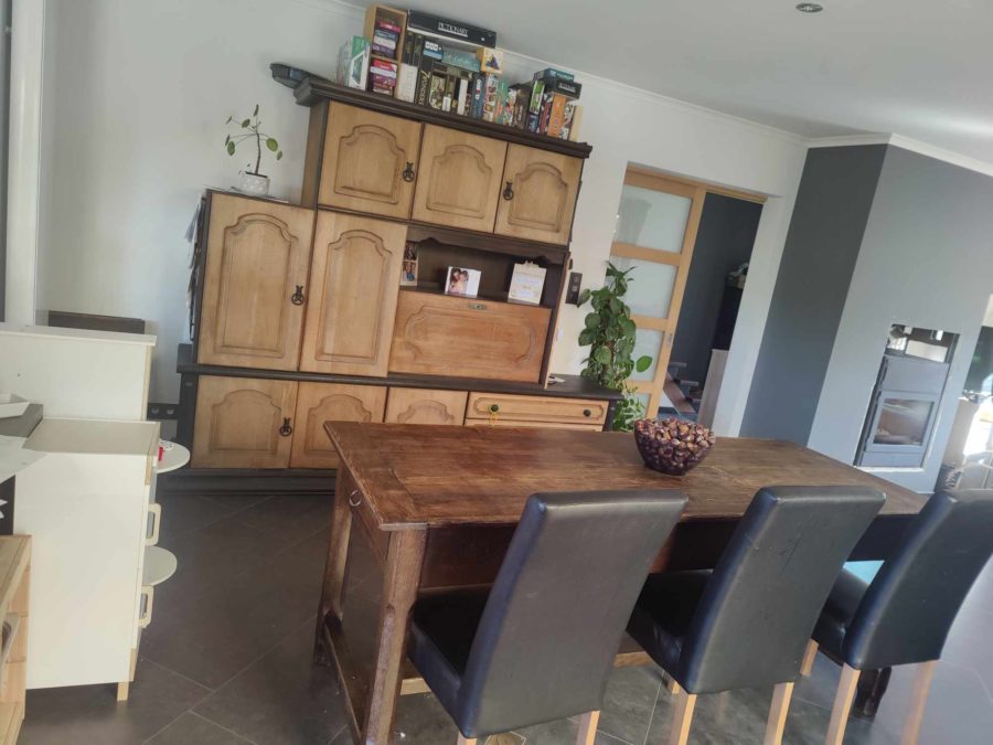 La maison, a été rénovée totalement en 2010 par les propriétaires précédents et différents travaux y ont encore été effectués comme la pose d’isolants supplémentaire, l’installation d’une chaudière à bois en complément de cette à mazout, l’aménagement de la cave, etc.