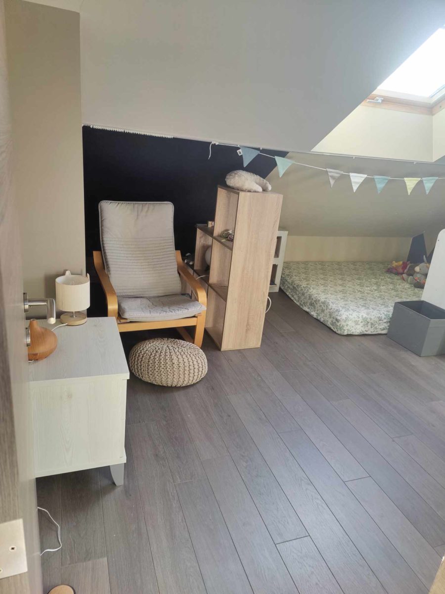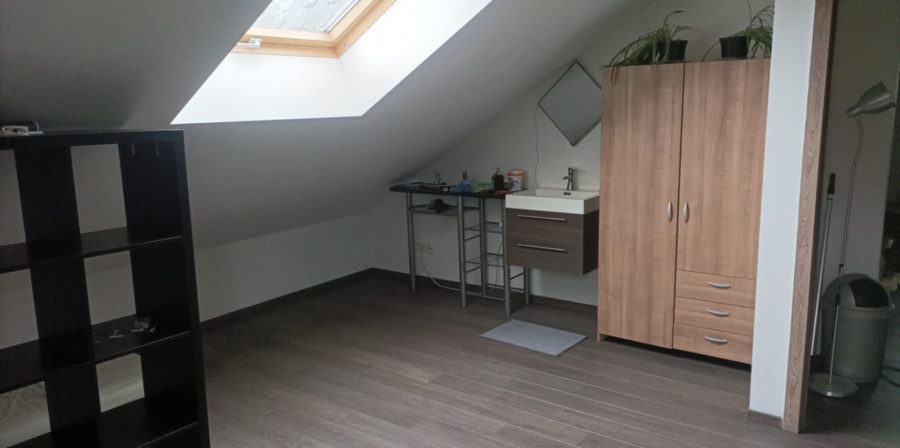 🛏🛏 Il s’agit donc de deux grandes chambres de +- 21 m2 au sol, dont l’une dispose d’un éviter. Elles sont séparées du reste de l’étage par un couloir et une porte privés. A l’étage se trouve aussi un petit grenier de rangement ainsi qu’un petit bureau de 10m2 qui sera compris dans le prix si vous prenez les deux chambres.