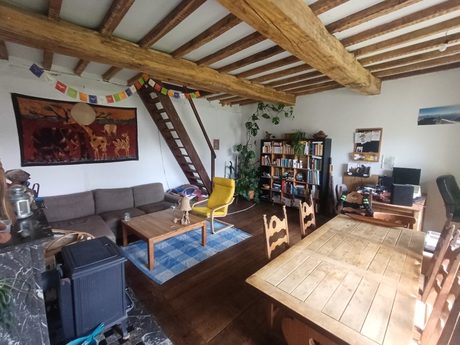 La coloc se situe dans une ferme en carrée, plus exactement dans l’ancien corp de logis. Elle se compose d’une buanderie avec machine à lavée et toilette sèche, d’une cuisine, d’un salon / salle à manger, d’une SDB avec douche baignoire et toilette, de 3 chambres, d’un jardin qui se situe à l’arrière de la ferme (avec quelques fruitiers).