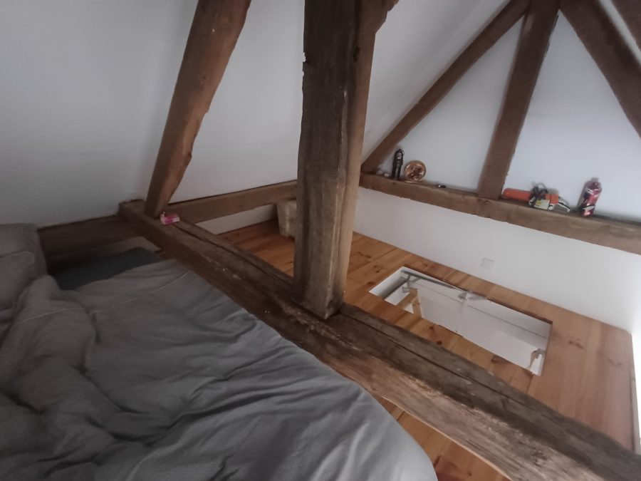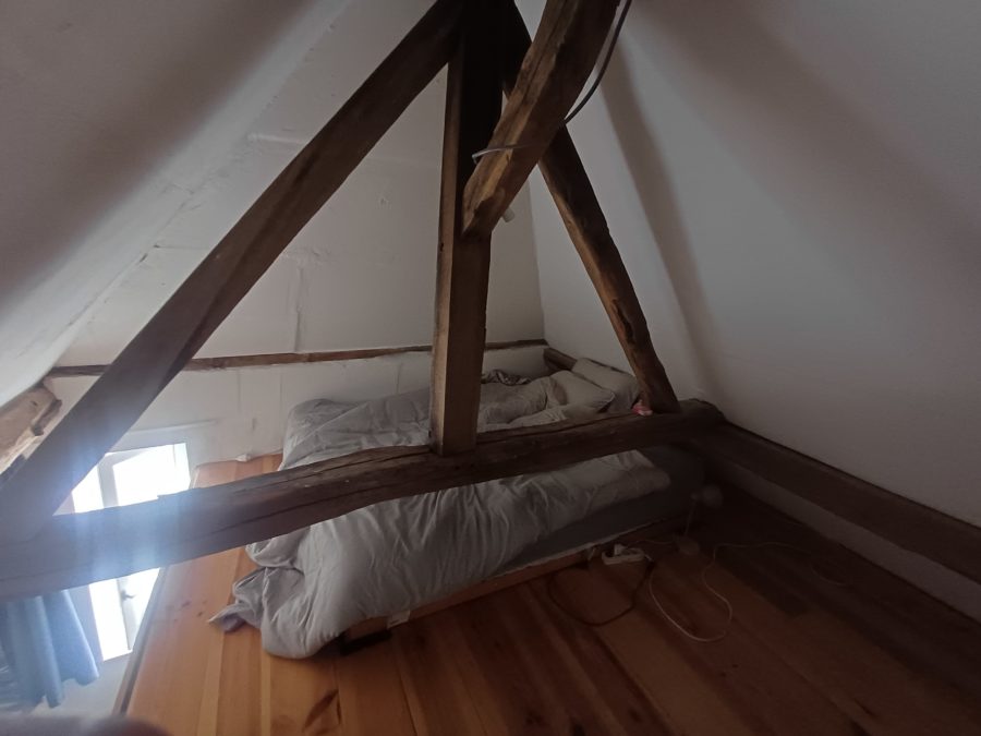 La chambre que je libère ( non-meublé) se compose d’une partie basse ( mansardée) de 12m² et d’une mezzanine (mansardée aussi) de 10m².