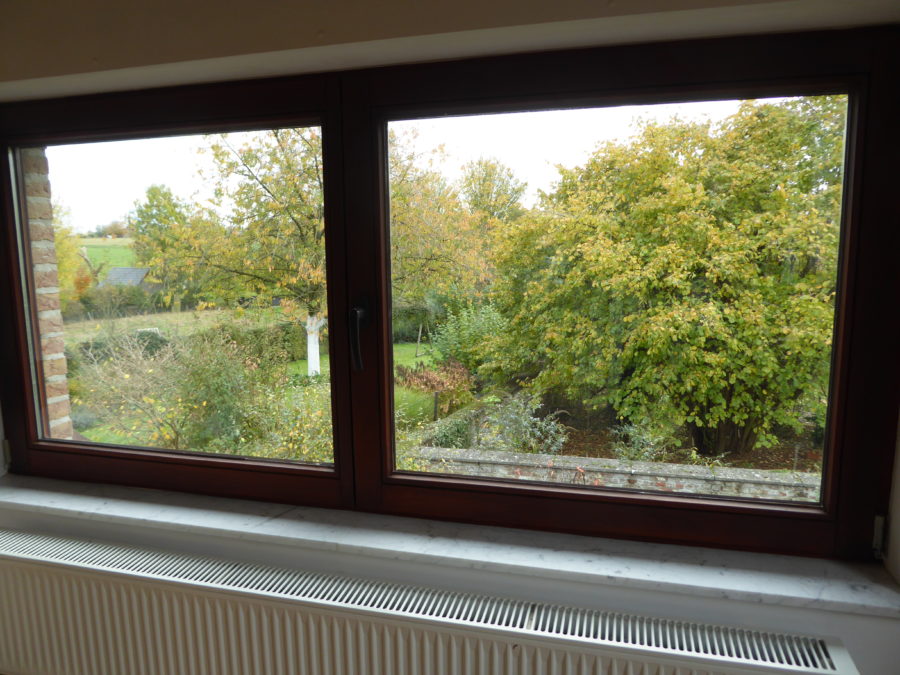 Espaces très lumineux et calmes, orientation sud/ouest, aucun vis-à-vis, vue unique sur le château médiéval de Sombreffe, grand jardin, parking privatif.