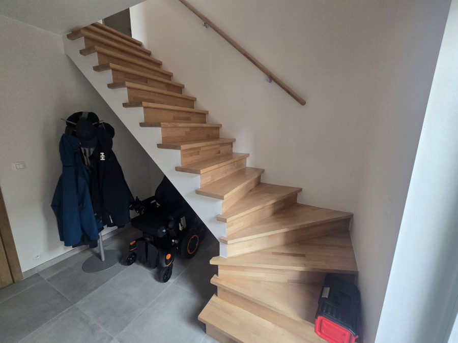 Appartement neuf, 90m2, 1er étage, 1 chambre, salle de bain et cuisine équipées, meublé ou non, mis gratuitement à disposition, pour une personne calme et disponible, pouvant prendre soin, 12 heures semaine, en complément des équipes soignantes et d’aides à domicile, d’une personne souffrant de SLA, maladie évolutive et gravement invalidante, vivant au rez-de-chaussée. Pas d’enfants ni d’animaux. Permis B indispensable. Préférence pour cohabitation long-terme. Contrat de travail pour 13 heures complémentaires possible via les titres service.