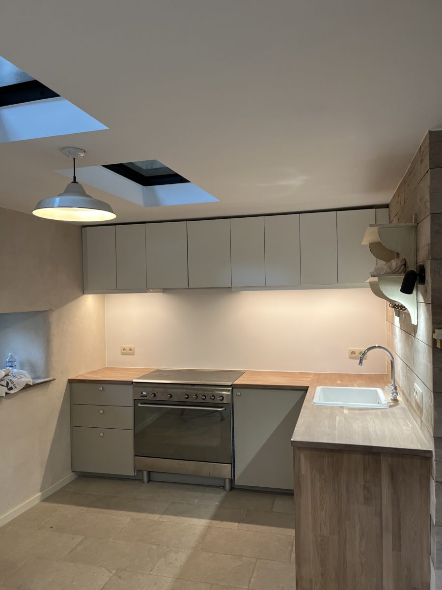 Le tout est neuf, rénové de manière réfléchie et un max écologique ..isolation naturelle ( chanvre et liège ) et revêtement naturel ( murs à la chaux , plancher en chêne ).