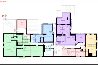 On y trouve déjà des logements de différentes tailles, de l’appartement unifamilial au studio, un gîte des chambres d’hôtes et un appartement adapté PMR parfait pour moi ! Tous ont déjà une entrée individuelle, cuisine équipée, salle de bains, le tout dans un très bon état et des matériaux de qualité.