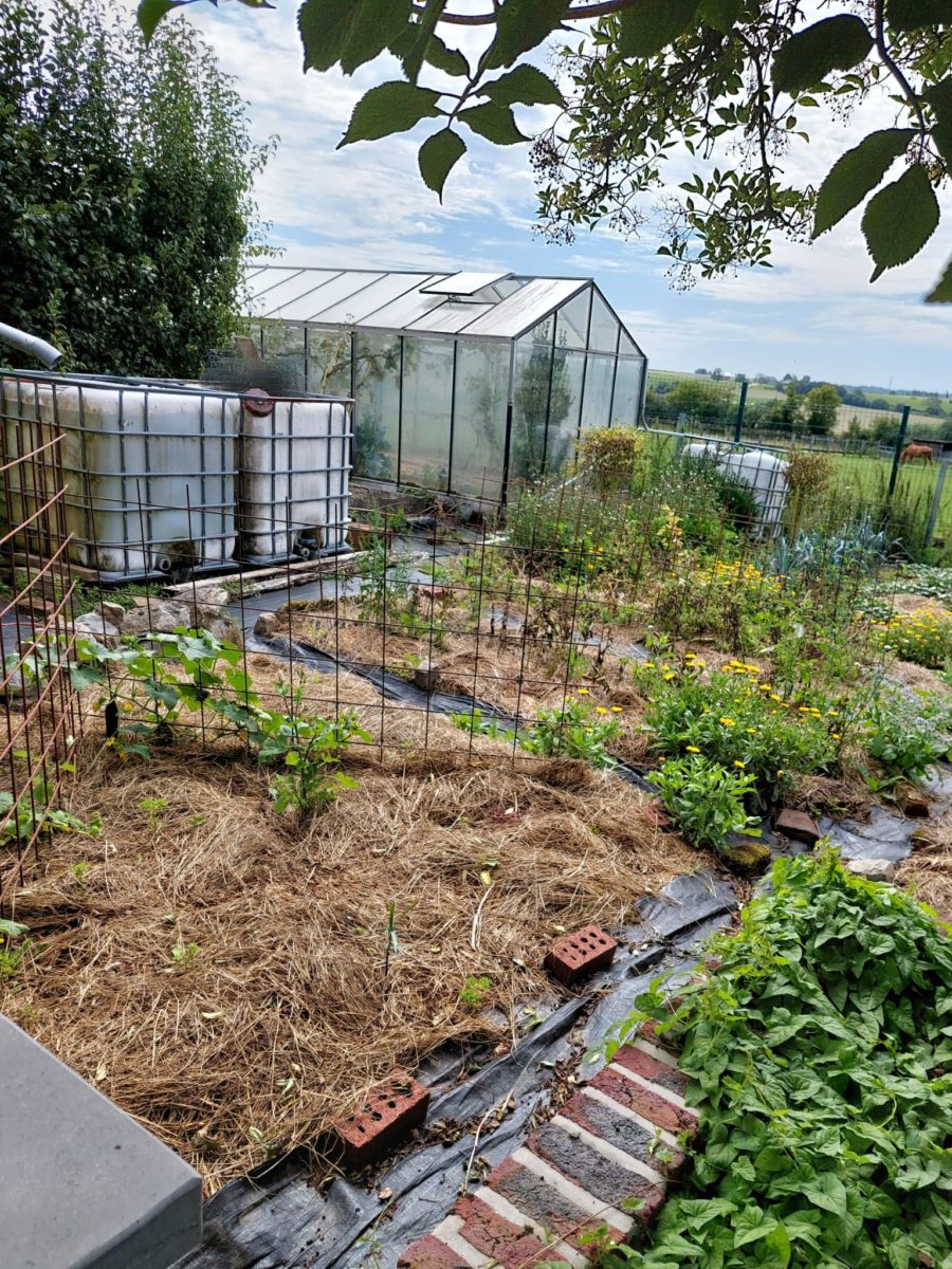 L’extérieur est aussi magnifique de par la qualité et la beauté des aménagements et plantations, verger, potager en permaculture, petits fruitiers, serres, étang, petit élevage etc.