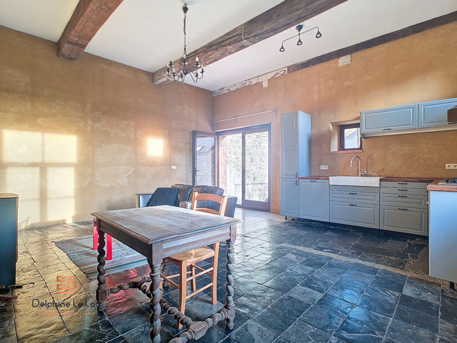 Et que dire de cette bâtisse en pierres que je vous présente ! vous serez charmé par ses matériaux ! un mélange de pierres et de briques aux murs, de la pierre bleue et du parquet au sol, mais aussi de l’argile !