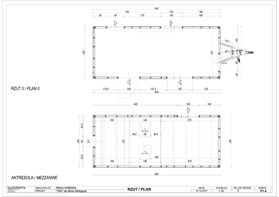 En haut, deux mezzanine : une suffisamment grande pour accueillir un lit double et une armoire pour ranger ses vêtements. Une plus petite avec un grand coffre de rangement et un matelas 1 personne.
